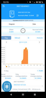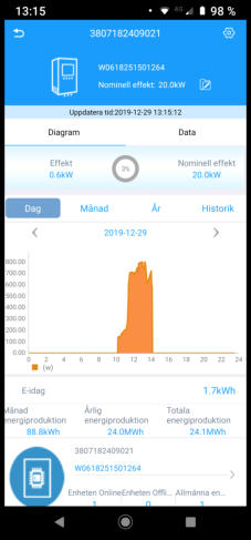 att du har registrerat din växelriktare på portalen. Då får du i din App information