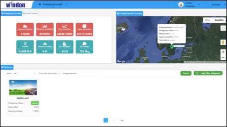 Översiktssida med samtliga anläggningar på kontot