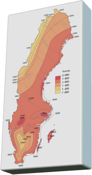 på ca 1000kWh/m² per år och i norr en effekt på ca 800kWt/m² per år. Med dessa
