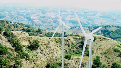 En liten vindkraftspark med 3 x 20kW vindkraftverk i södra Italien